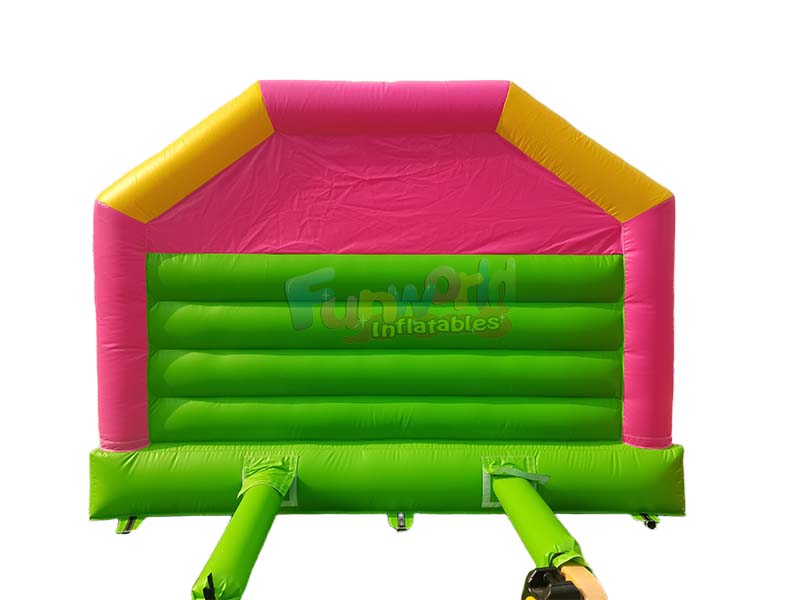 Этот Надувной домик для вечеринок на заднем дворе с горкой, украшенный весёлыми клоунами и яркими цветами, полон веселья. В центре входа находится небольшая горка, а по бокам от неё можно попасть во внутреннюю зону для прыжков. Яркие элементы с клоунами и разноцветный дизайн делают её визуально привлекательной. Дети могут прыгать, кататься на горках и исследовать мир, наслаждаясь живой и увлекательной игрой. Это чудесный рай для игр, который дарит детям бесконечную радость.