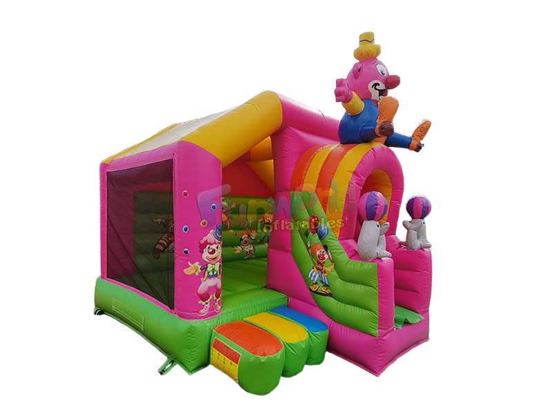 Этот небольшой надувной аттракцион с горкой, на которой изображена фигурка живого клоуна, — настоящий рай для детей, где они могут прыгать, кататься с горки, исследовать мир и выплескивать энергию ради удовольствия.
