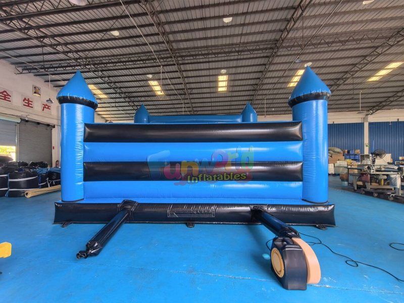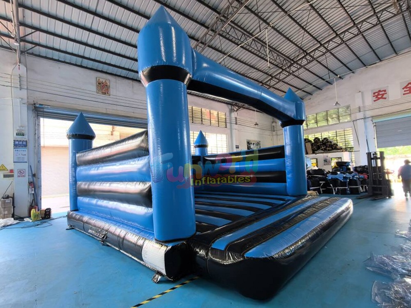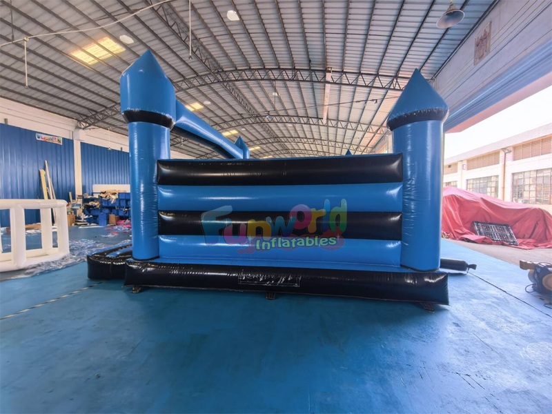 Этот сине-черный надувной батут выполнен в классическом средневековом стиле с четырьмя остроконечными башнями. Открытая конструкция обеспечивает отличную видимость и вентиляцию, а внутри находится просторная, мягкая поверхность для прыжков. Изготовленный из прочного винила промышленного класса, он выдерживает активные игры, что делает его безопасным и захватывающим украшением любой вечеринки.