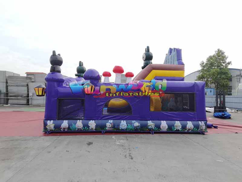 Лабубу надувной батут для улицыЗагадочная темно-фиолетовая основа в сочетании с узорами в виде молний и винтажными желтыми и черными фонарями создает атмосферу, идеально соответствующую причудливому и фантастическому миру LABUBU. Внешняя часть украшена мультяшными изображениями семьи LABUBU, а на вершине и колоннах размещены трехмерные надувные фигуры, что обеспечивает высокую плотность и точное воспроизведение элементов франшизы.