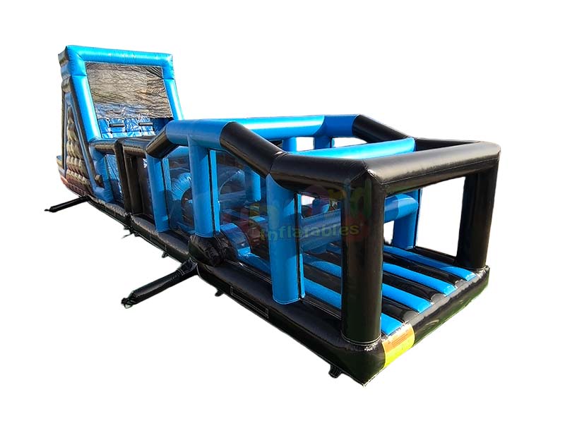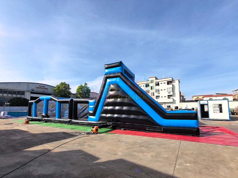 Коммерческая надувная полоса препятствий. Благодаря двухрядным врезным черным противоскользящим педалям с рельефным покрытием, эти педали увеличивают трение с подошвой и благодаря усиленным креплениям плотно прилегают к рампе, предотвращая смещение во время подъёма. Это полностью решает проблему скользящих ног и затруднений при подъёме, позволяя людям любого возраста равномерно прилагать усилия и повышая плавность подъёма.