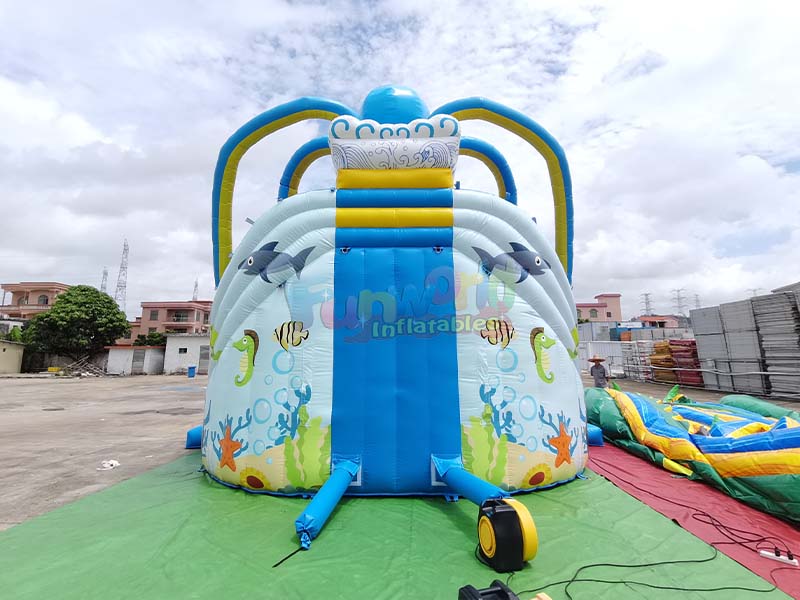 Надувная горка имеет гладкую и прямую поверхность, а ее уклон точно рассчитан, что не только обеспечивает плавное удовольствие от скольжения, но и позволяет плавно контролировать скорость, избегая угроз безопасности, вызванных слишком быстрым скольжением; края горки закруглены без острых углов, что полностью исключает риск появления царапин.