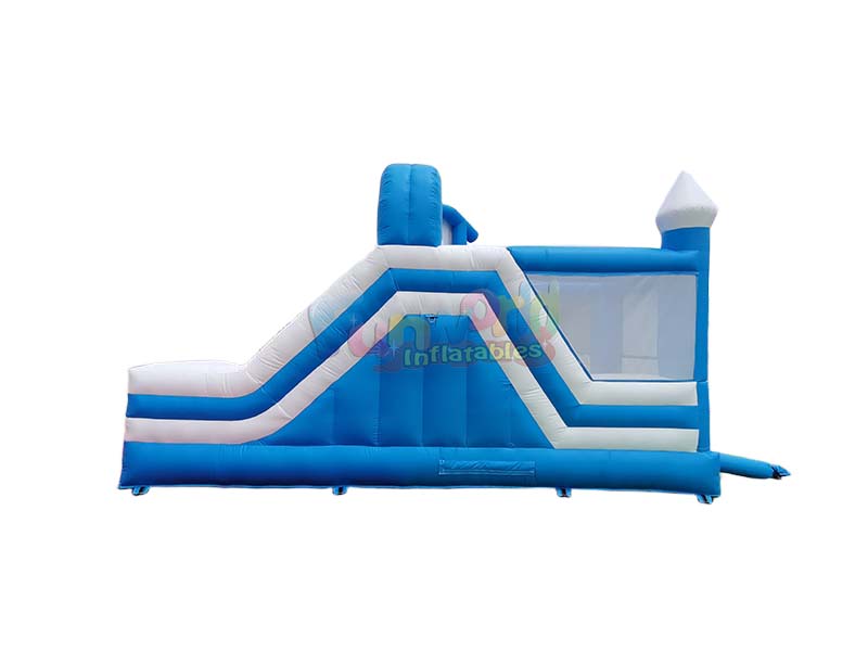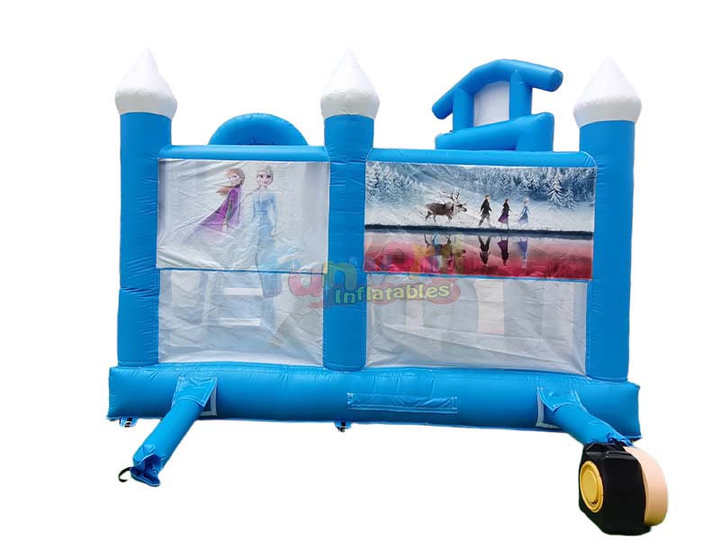 Этот Открытый батутный замок-комбо Создаёт волшебный игровой мир для детей. Здесь есть яркая игровая зона с ярким и игривым дизайном и стильная сине-белая надувная горка. Уникальные элементы конструкции, такие как батут, дополняют горку, создавая яркое игровое пространство. Дети могут прыгать, кататься с горки и полностью погрузиться в эту очаровательную ледяную и снежную зону приключений, полный веселья и азарта.